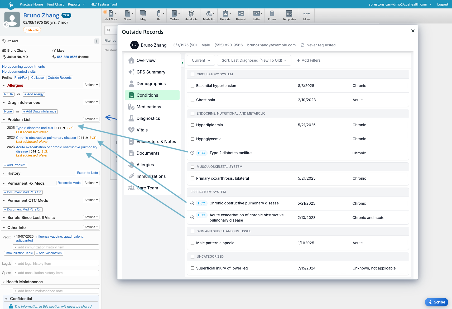 The ZAP in Elation gives you access to the data that Zus has on your patient and is accessible via the "Outside Care" on the patient chart.
