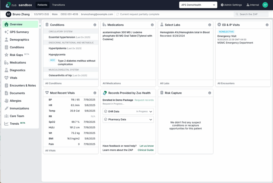 ZAP Search allows users to search across all clinical documents retrieved by Zus, helping care teams find the right information faster.